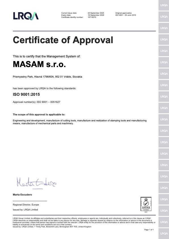 After the very beginnings, MASAM s.r.o. was founded in 2001. Its primary focus was servicing cutting tools. In a short period requirements and customer expectations increased, and consequently it was necessary to reconsider the focus and plans for the future in terms of investment and development of the company.